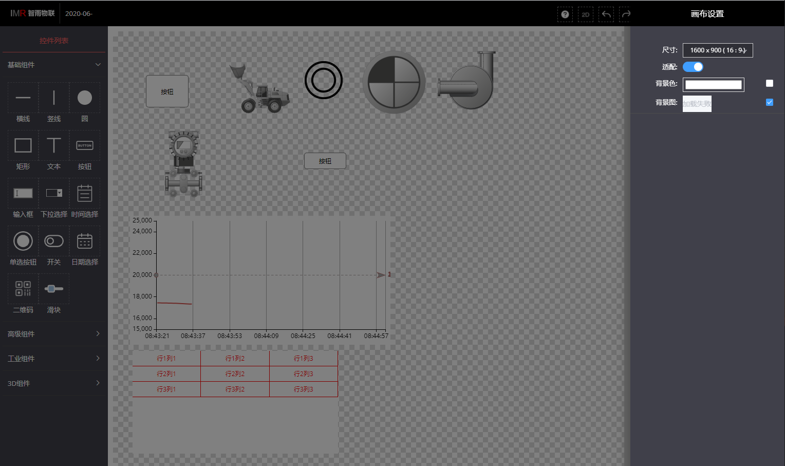 IMR工业物联网平台 提供了丰富的组件库,方便客户自由搭建自己的应用场景