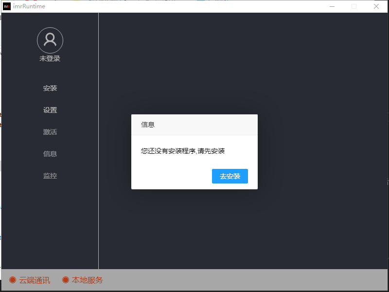 首次打开会提示没有安装程序,点击去安装按钮进入安装界面