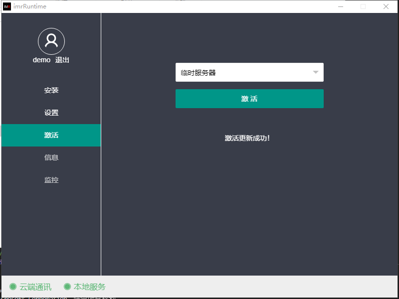解压缩版下载后是一个ZIP文件,可解压缩到任何一个目录下,双击目录下的imrRuntime.exe就可以打开软件并对服务器进行管理